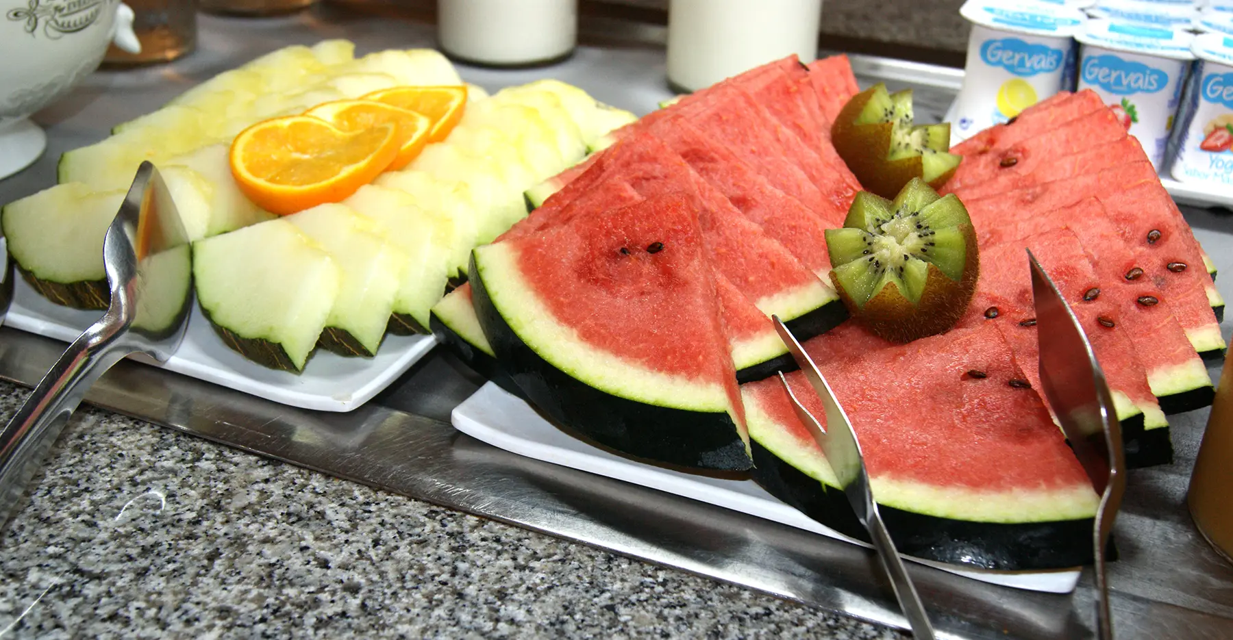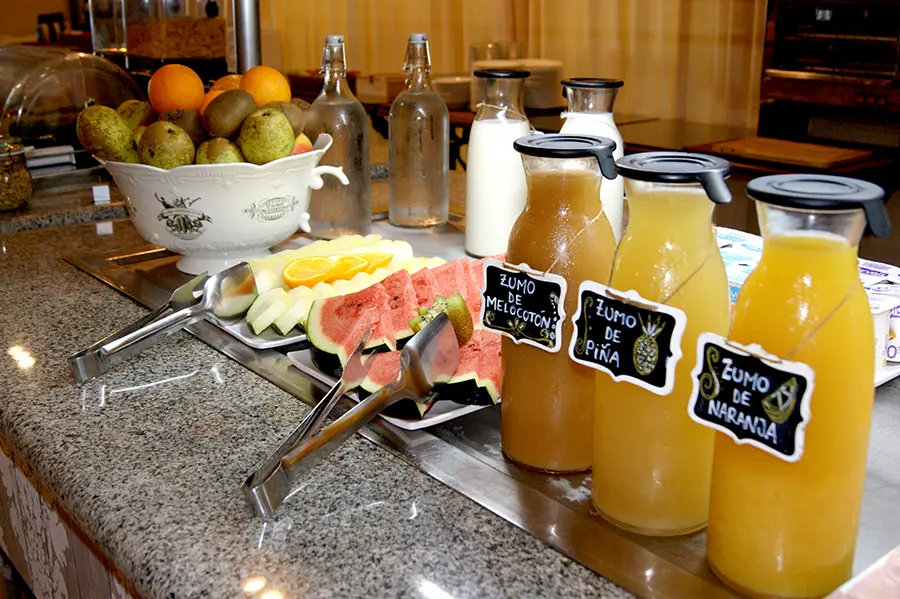 El Hotel Playa de Regla ofrece desayunos de tipo buffet con una selección exquisita para empezar el día con energía y deleite. Nuestra variedad incluye café Nespresso de cápsulas, fruta fresca de temporada, zumos refrescantes, lácteos de alta calidad, una selección de quesos y embutidos, una amplia gama de panes deliciosos y una irresistible variedad de complementos para untar como mantequillas, mermeladas y patés.
